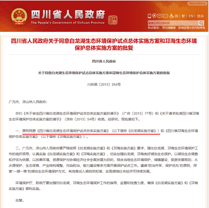 项目名称:四川省广元市白龙湖生态环境保护总体实施方案