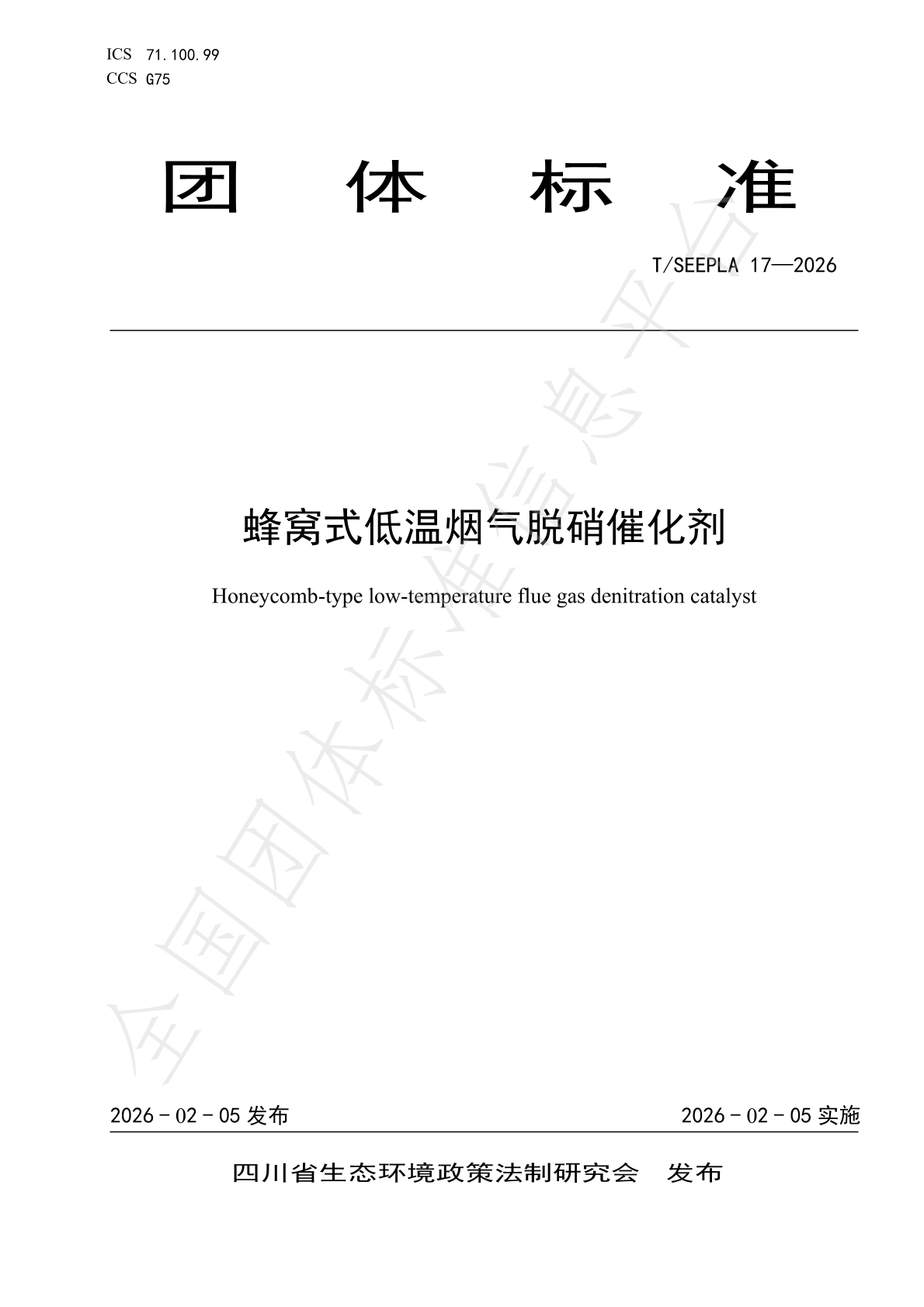 近日,四川省生态环境政策法制研究会正式发布《蜂窝式低温烟气脱硝催化剂》(T/SEEPLA 17-2026)团体标准,四川省环保科技工程有限责任公司、四川省环科院科技咨询有限责任公司参与了标准编制工作。该标准聚焦蜂窝式低温烟气脱硝催化剂的产品规格、试验方法、性能指标等关键内容进行规范,填补了国内低温脱硝催化剂领域标准空白,有效提升了该类催化剂的标准化、规范化水平,为钢铁、水泥、焦化等非电行业低温烟气脱硝治理提供了重要技术依据。